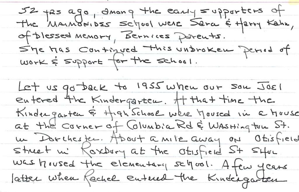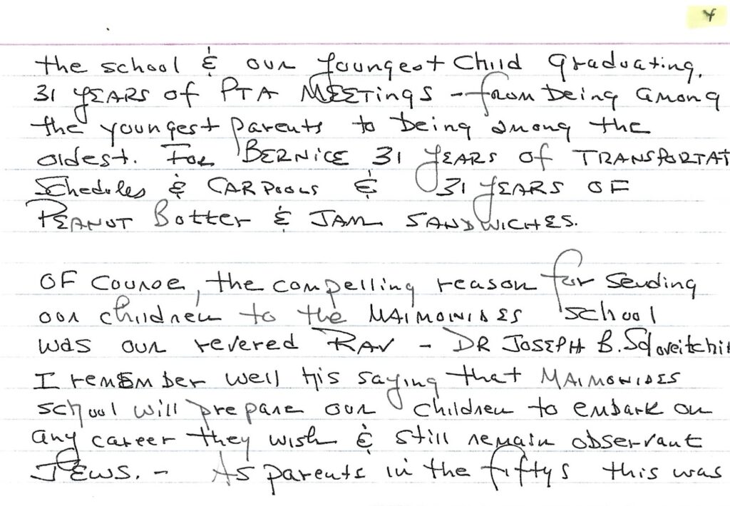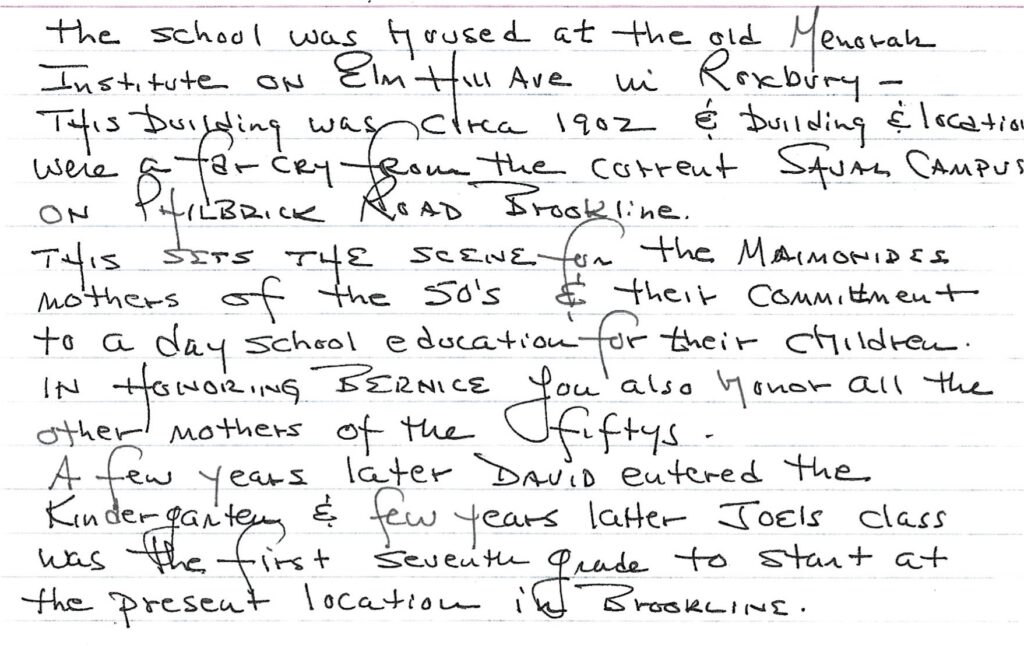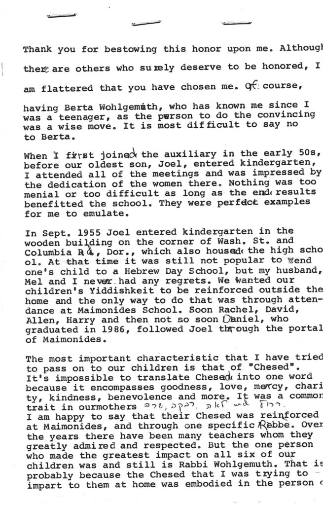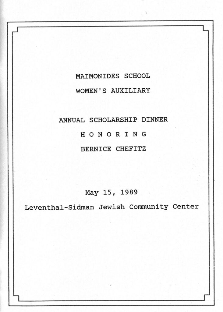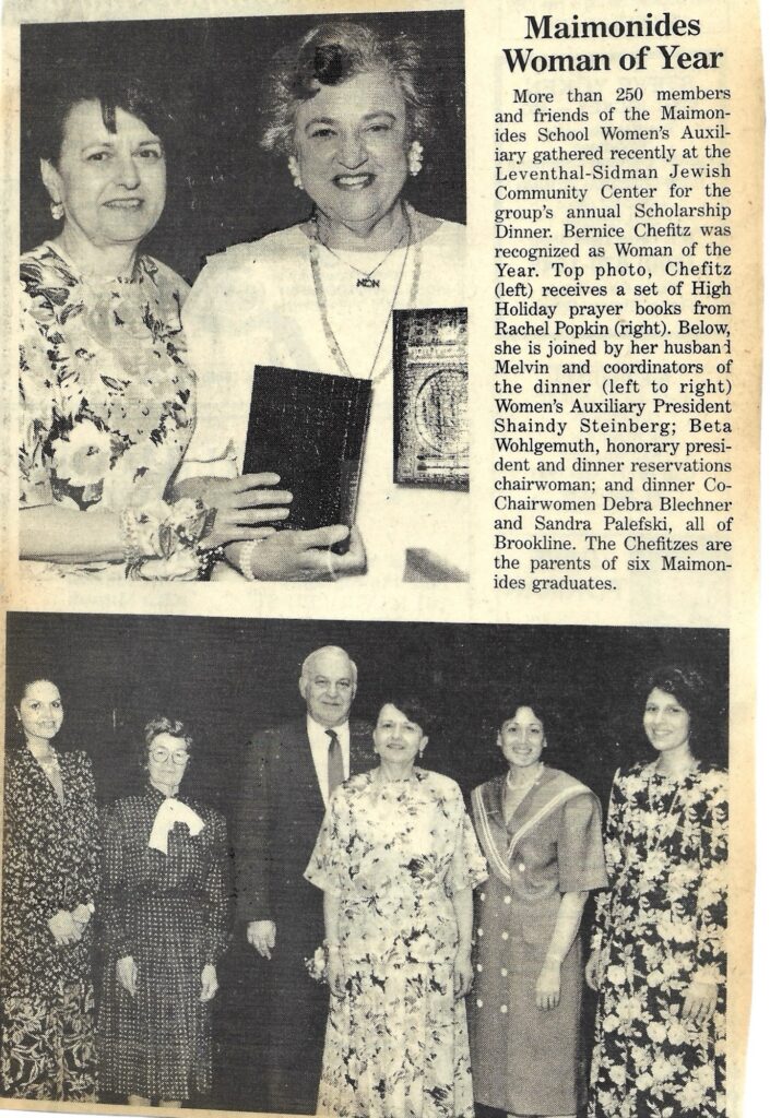 Bernice Chefitz was honored by Maimonides School in Brookline, Massachusetts, at their annual Scholarship Dinner.
